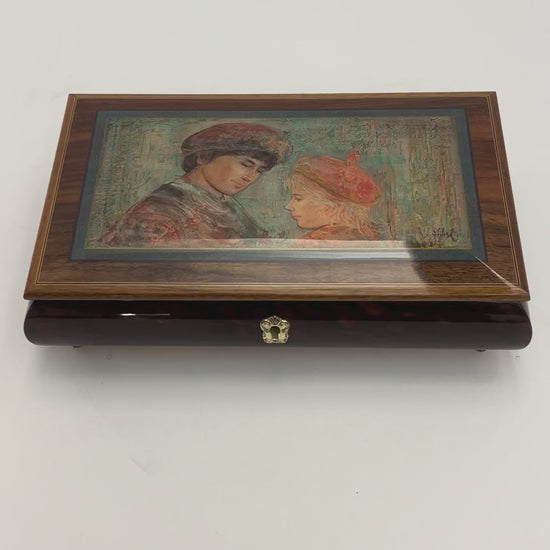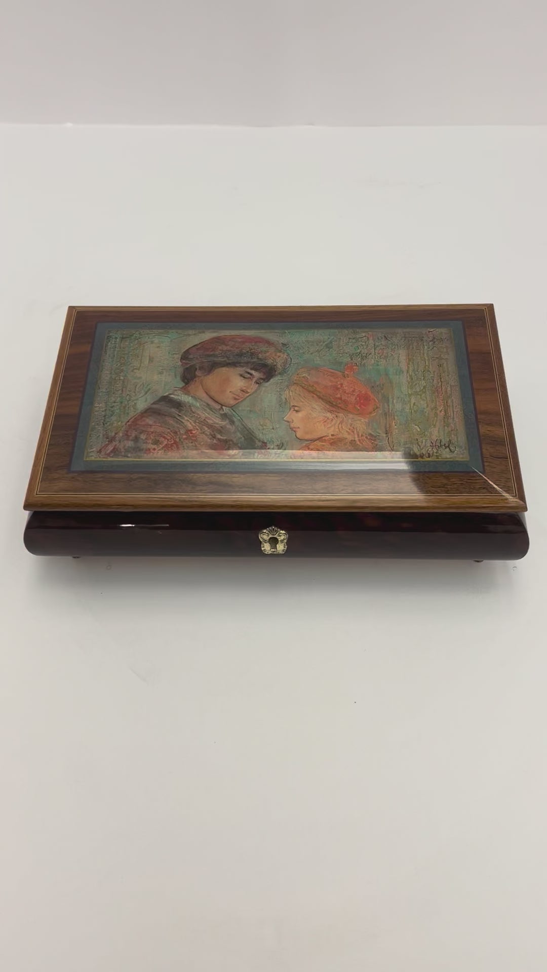 Beautiful highly polished Italian made wood box with Hibel picture on the lid